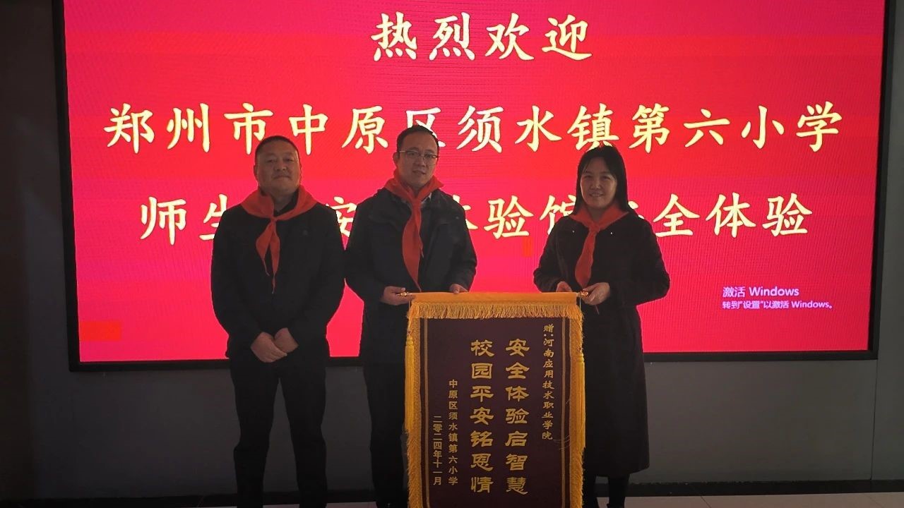 首先,中原区须水镇第六小学董事长孔彦华给公司送来一面“安全体验启智慧 校园平安铭恩情”的锦旗,表达对公司积极从事科普教育工作的感谢。